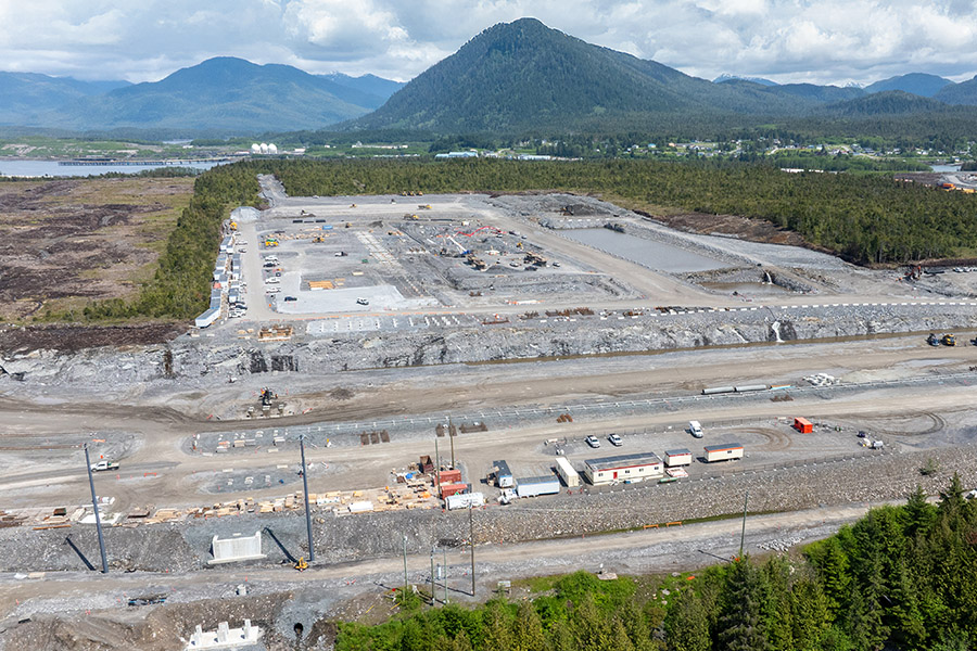 - Night activities include water management, fueling, rock breaking on the west Rail, Road Utility Corridor and Uplands foundation backfill, and welding on the Jetty piers